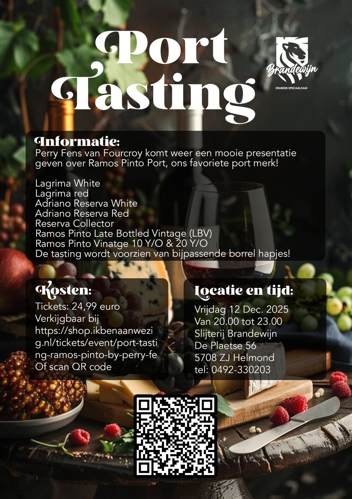 Uw proeft een breed scala aan verschillende port wijnen van ons favoriete port merk Ramos Pinto. Wederom een compleet en gezellig avondje uit in hartje Brandevoort.