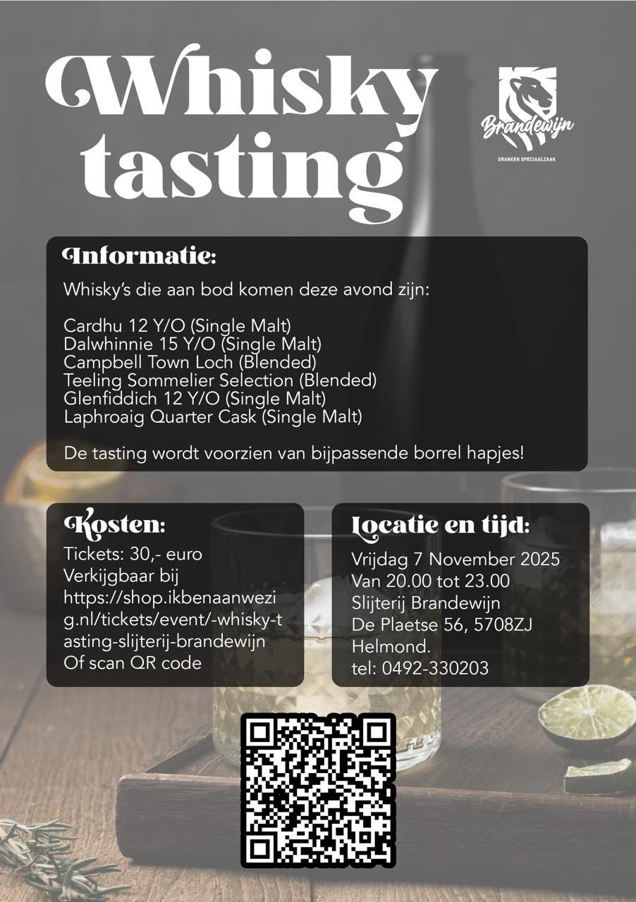 Mis de kans niet om te genieten van een avondje ontspanning in het gezelschap van goede vrienden en uitstekende whisky!